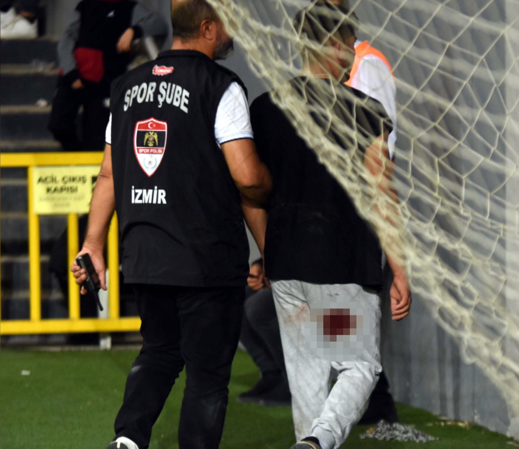 Bu esnada bir taraftar, tekme ve yumruklarla kavga eden taraftarlardan birini 3 kez bacağından belirlenemeyen kesici, delici bir aletle yaraladı. Saldırıyı gerçekleştiren taraftarı tribündeki güvenlik güçleri uzaklaştırdı. Sağ arka baldırından yaralanan taraftar ise spor şube polisi eşliğinde ambulansa götürülüp tedavi edildi. Yaşanan tribün şiddetini karşı tribünde yer alan başka bir taraftar cep telefonuyla kaydetti. Görüntüler sosyal medyada yayınlanıp yayıldı.