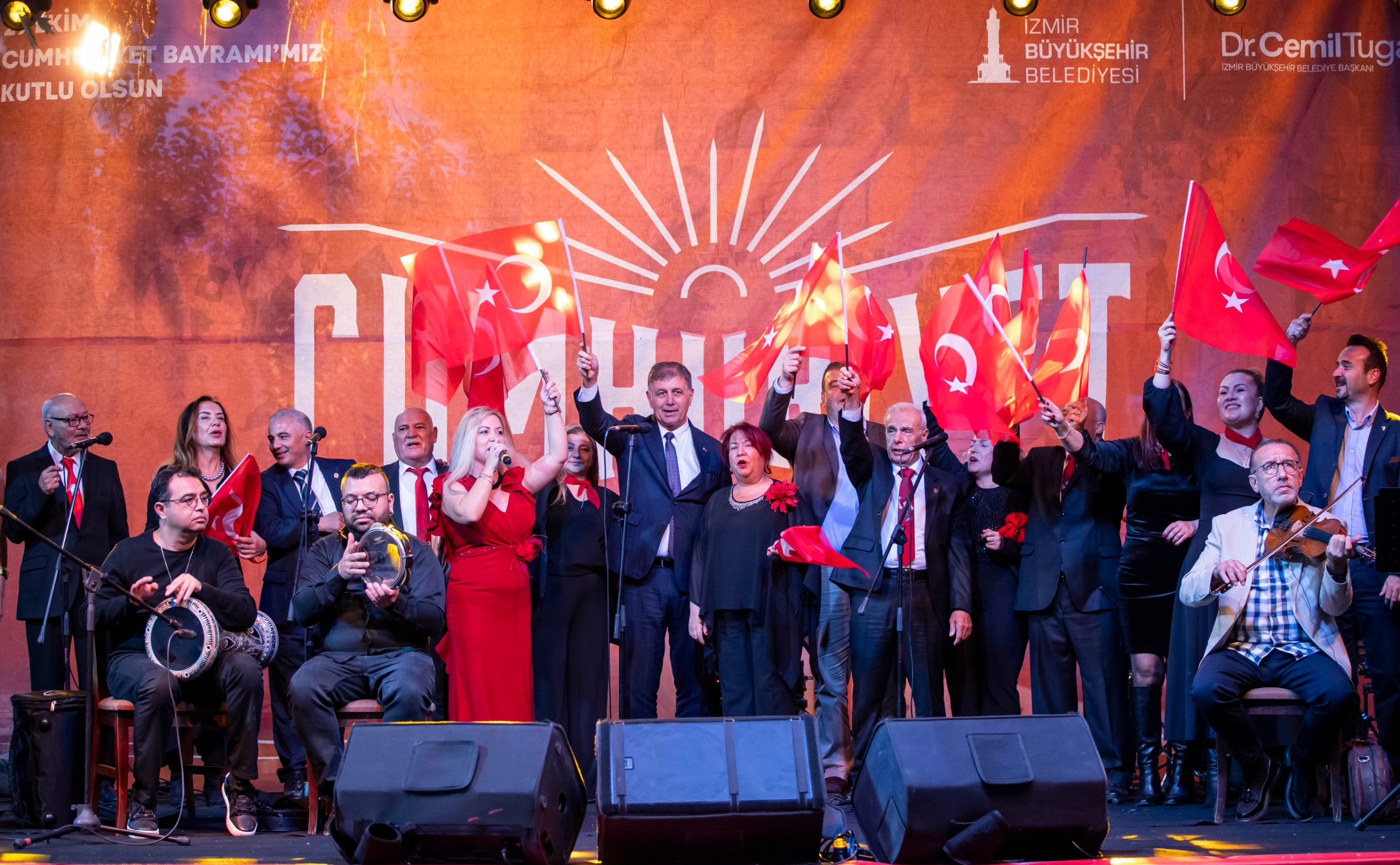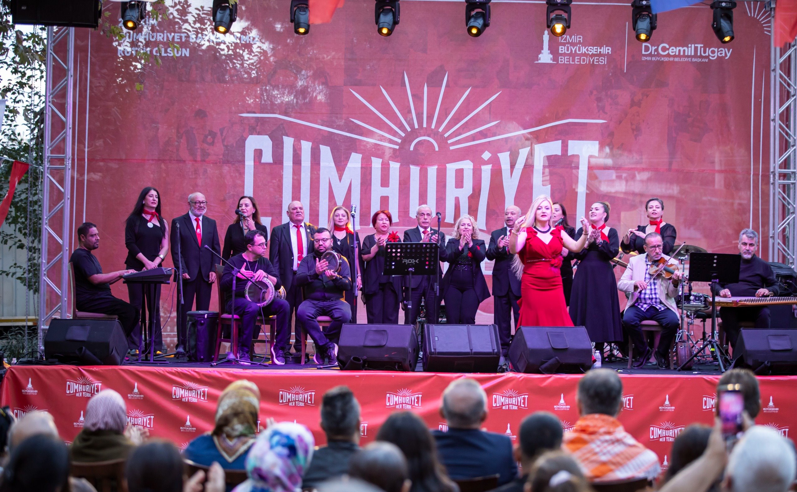 Bando gösterisinin ardından halk oyunu gösterisiyle devam eden programda; İzmir Büyükşehir Belediyesi Pop Orkestrası, Kültür Orkestrası ve Türk Halk Müziği Muhtarlar Korosu’nun konserleri bayram coşkusu yaşattı. İzmir Büyükşehir Belediye Başkanı Dr. Cemil Tugay ve yurttaşlar, koroyla birlikte İzmir Marşı’nı söyledi.