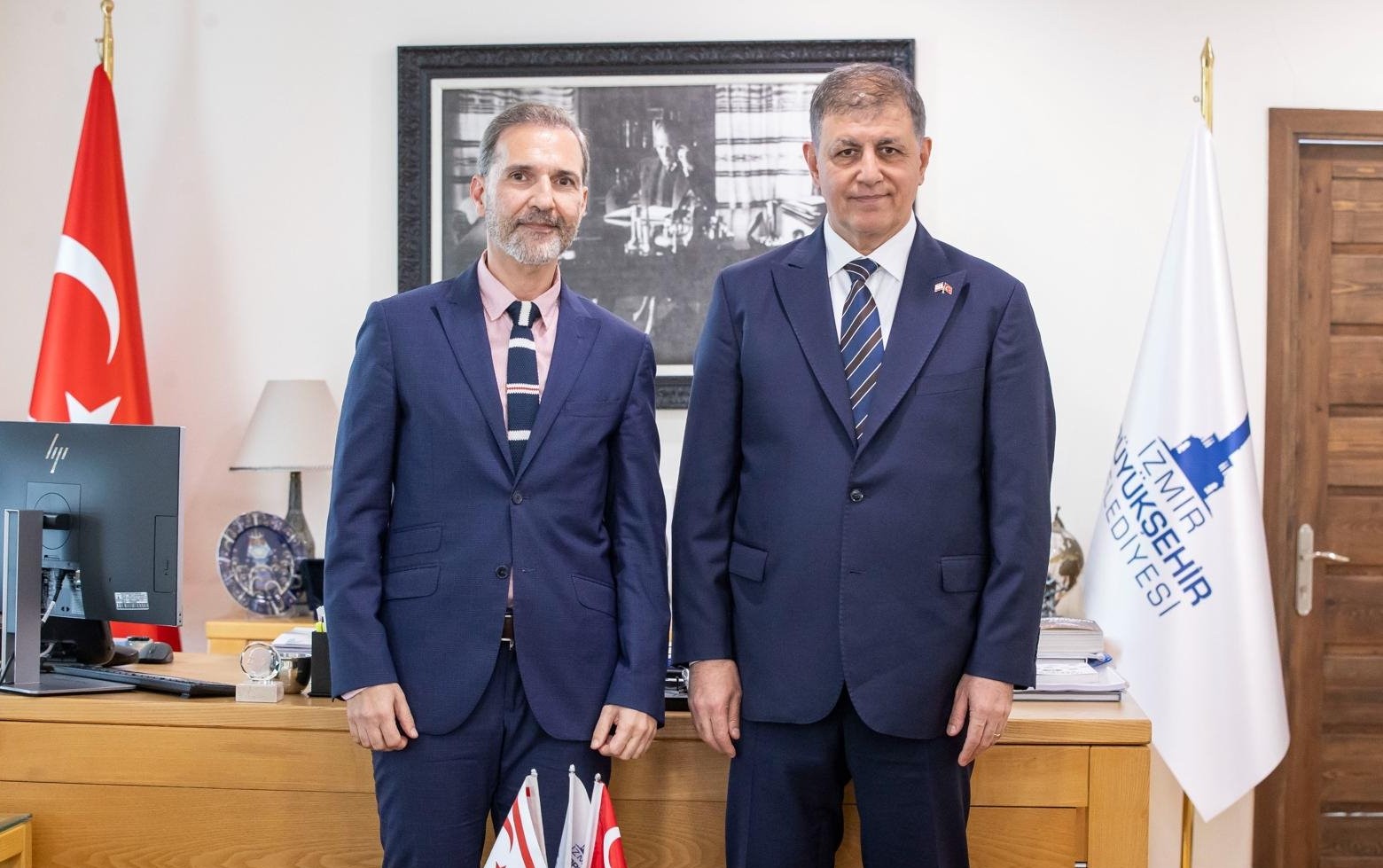 İzmir’de görevine yeni başlayan Kuzey Kıbrıs Türk Cumhuriyet (KKTC) Başkonsolosu Mustafa Davulcu, İzmir Büyükşehir Belediye Başkanı Dr. Cemil Tugay’ı ziyaret etti. Ziyarette İzmir Büyükşehir Belediyesi Genel Sekreter Yardımcısı Övünç Özgen, İzmir Büyükşehir Belediyesi Dış İlişkiler Dairesi Başkanı Selin Sayın Kapancı, İzmir Büyükşehir Belediyesi bürokratları da yer aldı.
