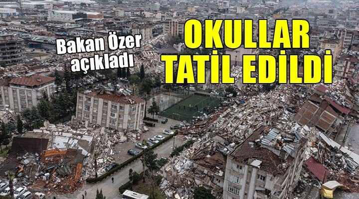 Özer, "Tüm Türkiye'de şu andaki iklim şartlarını göz önüne alarak ve deprem bölgelerindeki çalışmaların çok daha suhuletle olması bağlamında sadece deprem bölgesindeki illerde değil; çevresindeki illerin de suhuletli bir şekilde süreçleri yönetmesi için bugünden itibaren tüm Türkiye'de tüm okullarımızı 13 Şubat'a kadar bir hafta tatil ediyoruz. Böylece millet olarak, devlet olarak hem süreçleri daha rahat bir şekilde yürütme hem de özellikle bu 10 ilde akrabaları olan diğer illerdeki vatandaşlarımızın erişimini kolaylaştırmak anlamında da bu kararı almış bulunuyoruz. Ama bu kararı alırken tüm illerimizdeki, özellikle 10 ilimizdeki okullarımızın tamamı vatandaşlarımızın hizmeti için açık tutulacak. Konaklama, yemek ikramıyla ilgili her türlü hizmet okullarımızda, öğretmenevlerimizde vatandaşlarımıza 7/24 kesintisiz bir şekilde intikal ettirilecek" dedi.