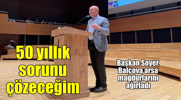 İzmir Büyükşehir Belediye Başkanı Tunç Soyer Balçova Arsa Mağdurları olarak gündeme gelen yurttaşlarla Ahmed Adnan Saygun Sanat Merkezi'nde geniş katılımlı bir toplantı yaptı. Toplantıya İzmir Büyükşehir Belediyesi Genel Sekreteri Barış Karcı, İzmir Büyükşehir Belediyesi Genel Sekreter Yardımcısı Suphi Şahin, Balçova Belediye Başkanı Fatma Çalkaya ve Büyükşehir Belediyesi bürokratları eşlik etti.