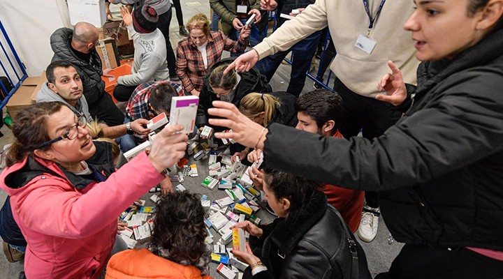 İzmir’in dört bir yanından yardımların toplandığı ana lojistik merkezi konumundaki Fuar İzmir’de yoğun faaliyet sürüyor. Fuar İzmir’e gönüllü olarak gelen doktor, eczacı, hemşire ya da tıp, eczacılık ve hemşirelik fakültesi öğrencileri, bölgeye gönderilmek üzere bağışlanan sağlık malzemeleri ile ilaçların ayrıştırılıp sınıflandırılması için aralıksız çalışıyor. İlgili kurumlar ve bölgedeki sağlık çalışanlarından gelen ihtiyaç listelerine göre, belirtilen tıbbi malzeme ve ilaçlar resmi kurumların koordinasyonuyla gönderiliyor.