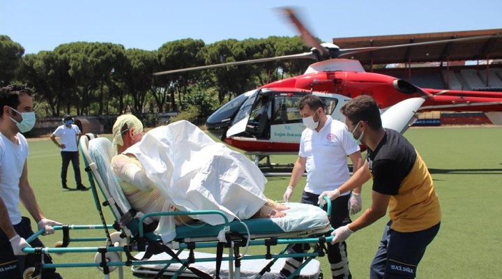 Murat E. buradaki ilk müdahalenin ardından hava ambulansıyla Sağlık Bilimleri Üniversitesi Bozyaka Eğitim ve Araştırma Hastanesi'ne nakledildi.