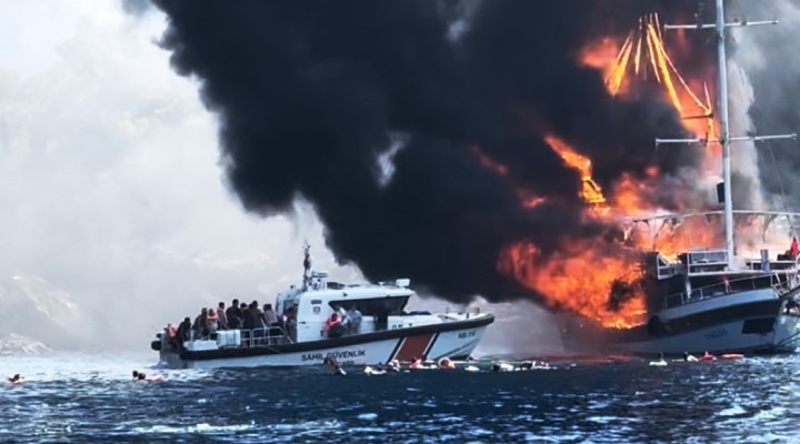 İçmeler Mahallesi Kızılbük mevkisi açıklarında "Eagle's" isimli günübirlik ahşap tur teknesinde yangın çıktı.