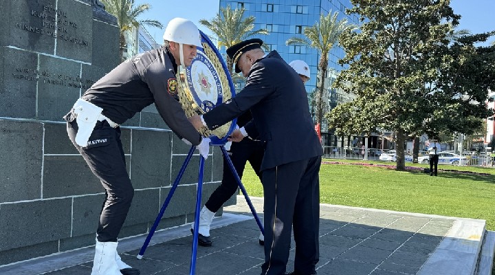 Cumhuriyet Meydanı'ndaki törende İzmir Emniyet Müdürü Celal Sel, Atatürk Anıtı'na çelenk sundu.