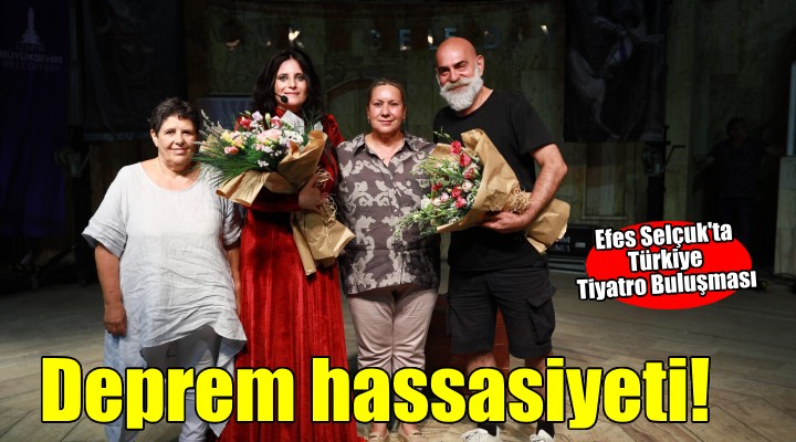 Amfi Tiyatroda verilen ödül öncesi konuşma yapan Efes Selçuk Belediye Başkan Yardımcısı Erhan Güzel, bir toplumun gelişmişlik düzeyini ölçen kriterlerden birinin de bir toplumun doğal afetlere karşı gösterdiği direnç olduğuna dikkat çekerek; “Doğa olaylarını afete dönüştüren insanın yaptıklarıdır. Toplumların gelişmişliğine göre de bunun sonuçları farklıdır. Türk Tiyatrosunun çok kıymetli oyuncusu Orhan Aydın maalesef 6 Şubat 2023’te kızı Eylem Şafak Aydın’ı kaybetti. Onun anısına Dayanışma Ödülü’nü, depremi bize bütün ayrıntılarıyla, ihmalleriyle, hırsız müteahhitleriyle, sorumsuz yöneticileri ile aktaran Gazeteci İsmail Saymaz’a veriyoruz” dedi.