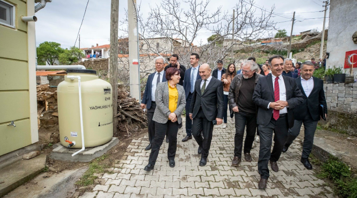 Yağmur hasadı için köyde evlerin bahçelerine yerleştirilen depoları inceleyen Başkan Tunç Soyer, “Dünyamız çok büyük bir küresel kriz ile baş başa. İklim krizi denilen bu kriz aslında gezegenimizin hastalanması demek. Biz nasıl hastalanırız, vücut ısımız bir derece yükselir, 38 derece olduk mu yatağa yatarız. Bizim gezegenimiz de bir buçuk derece ısındı. Artık hasta bir gezegende yaşıyoruz. Üzerinde yaşadığımız gezegen iyi olmadan biz iyi olamayız. Deprem, susuzluk, kuraklık, büyük seller, su baskınları... Geçmişte bu kadarı hiç bir zaman yaşanmadı. Şimdi neden yaşanıyor? Çünkü bu hasta gezegen her gün bir yerden hastalığının belirtilerini gösteriyor” dedi.