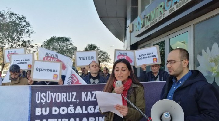 İzmir'de İzmirgaz Genel Müdürlük Binası önünde toplanan TKP'liler, "Boyun Eğme Ensar'dan hesap sor", "İnsanca ısınmak istiyoruz", "Boyun Eğme AKP'den hesap sor", "İzmirGaz elini cebimizden çek", "İnsanca bir yaşam sosyalizmde" sloganları attı.