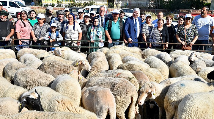 İzmir Büyükşehir Belediyesi'nin küçükbaş hayvancılığın desteklenmesi konusundaki çalışmaları devam ediyor. İzmir’in Aliağa ilçesinde düzenlenen törenle yetiştiricilik eğitimlerini tamamlayan 13'ü kadın 25 üreticiye toplam 98 adet küçükbaş hayvan hibe edildi. Köylülere hayvanları İzmir Büyükşehir Belediyesi Başkan Vekili Mustafa Özuslu törenle armağan etti.