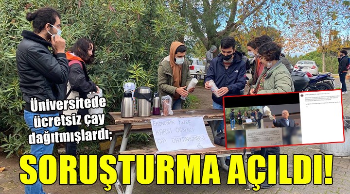 "Dokuz Eylül Üniversitesi'nde dayanışmak için çay dağıtımı yaptığı gerekçesiyle 4 arkadaşımıza soruşturma açıldı. AKP iktidarının kuklası kayyum rektör Nükhet Hotar'a soruyoruz: Çayı poşet poşet öğrencilere fırlatsak soruşturma geri çekilir mi?" denildi.