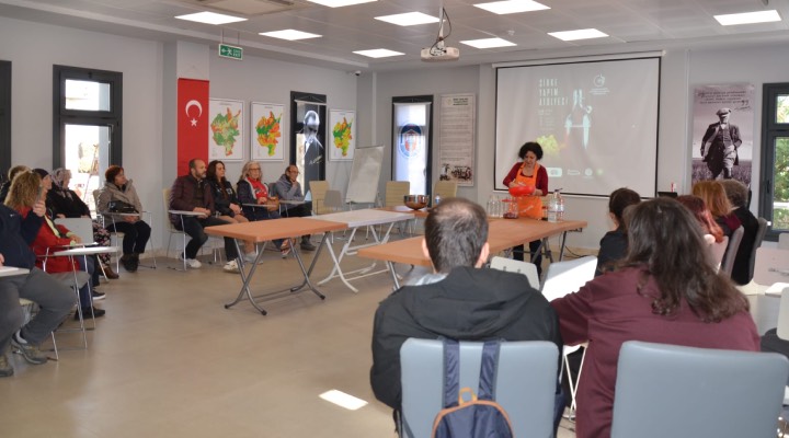 Sirke Yapım Atölyesinde Selçuk Efes Tarımsal Kalkınma Kooperatifi ortaklarından Fatma Doğan katılımcılarla evde sirke yapımına dair önemli bilgiler paylaştı. Nar ve elma sirkesi yapımının uygulamalı olarak yer aldığı Sirke Yapım Atölyesi’nde Fatma Doğan, birçok sağlık sorununa fayda sağlayan sirke çeşitlerinin evde doğal ürünlerle katkısız bir şekilde yapılmasının önemine değindi. Fatma Doğan ayrıca sirkenin fermente bir ürün olması nedeniyle bağışıklık sisteminin güçlenmesi için mutlaka tüketilmesi gerektiğini belirtti.