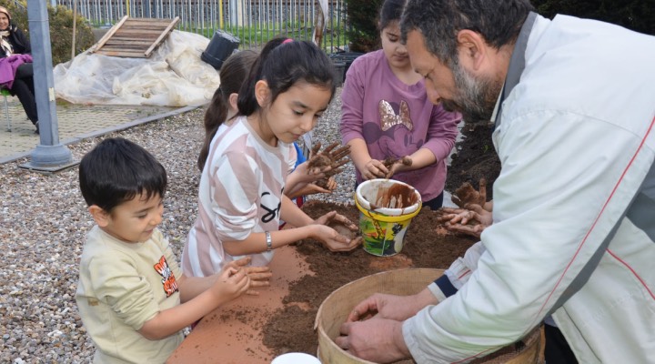Efes Selçuk Belediyesi’nin tüketicileri üreticilerin doğal ürünleriyle aracısız olarak buluşturmayı amacıyla hayata geçirdiği Üretici Pazarı’nda “Çocuklarla Tohum Atölyesi” düzenlendi. Atölyeye katılan çocuklar ilk olarak Tohum Merkezi’nde tohum çeşitleriyle tanıştı. Daha sonra seçilen tohumları toprakla buluşturan ve tohum topları yapan çocuklar, üretimin topraktan sofraya uzanan sürecini deneyimlediler.