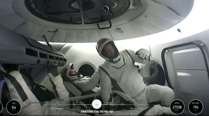 Ardından SpaceX mühendislerinden Gillis de kapsülden çıkarak uzay yürüyüşünü yaptı.