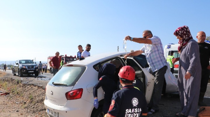 Savrulan otomobillerden biri, kaza yerinden geçen Aslan Bilen (43) yönetimindeki motosiklete çarptı. Kazada, sürücüler ile araçlardaki Fatma Betül Tütüncü (41), Berk Tütüncü (8), Beren Tütüncü (13), Aslan Bilen, Kübra Eğilmez (22) ve 4 aylık Aplarslan Eğilmez yaralandı.