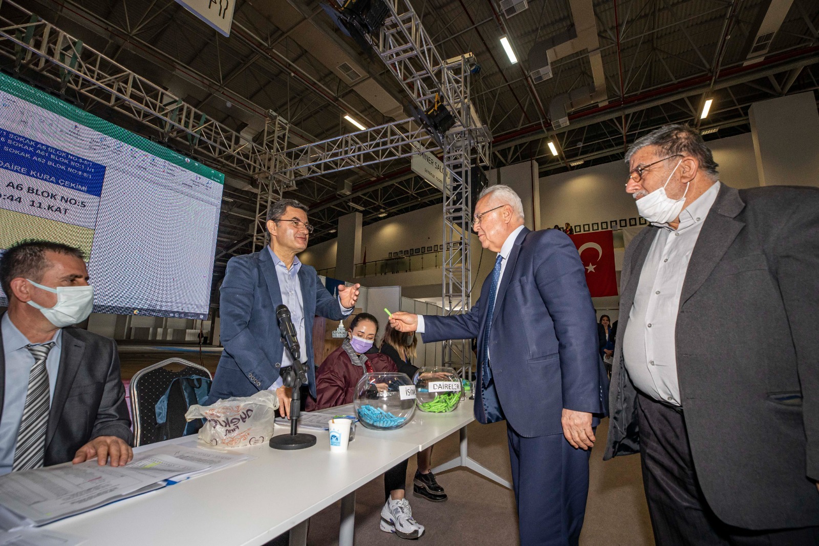 Fuar İzmir’de yapılan ve bin 283 konut ile 24 işyerini kapsayan dördüncü etabın kura çekim törenine İzmir Büyükşehir Belediye Başkanı Tunç Soyer, Karabağlar Belediye Başkanı Muhittin Selvitopu, İZBETON Genel Müdürü Heval Savaş Kaya, İzmir Büyükşehir Belediyesi Genel Sekreter Yardımcısı Suphi Şahin, İzmir Büyükşehir Belediyesi bürokratları, muhtarlar ve hak sahipleri katıldı.