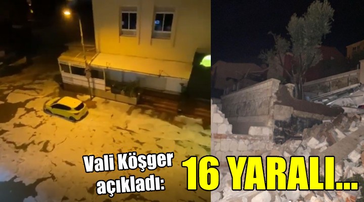 SONKALEİZMİR-Sosyal medyadan bir açıklama yapan İzmir Valisi Yavuz Selim Köşger, "Bu gece 21.30 civarında Çeşme-Alaçatı ve Urla’da kuvvetli yağış dolu ve hortum nedeniyle maddi hasar oluşmuş ve 16 vatandaşımız hafif şekilde yaralanmıştır. Bölgeye 2 kurtarma aracı 9 Afad personeli ve itfaiye ekipleri sevk edilmiş olay arkadaşlarımızca yakınen takip edilmektedir" bilgisini verdi.