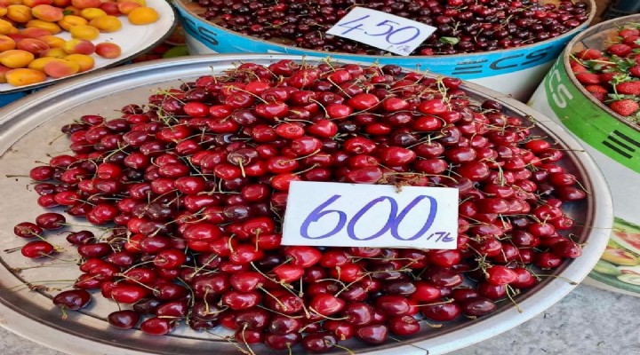 Marketlerde ve manavlarda kilogram fiyatı 500 TL'den başlayan kiraz kimi noktalarda 600-1000 TL arasında satılıyor.