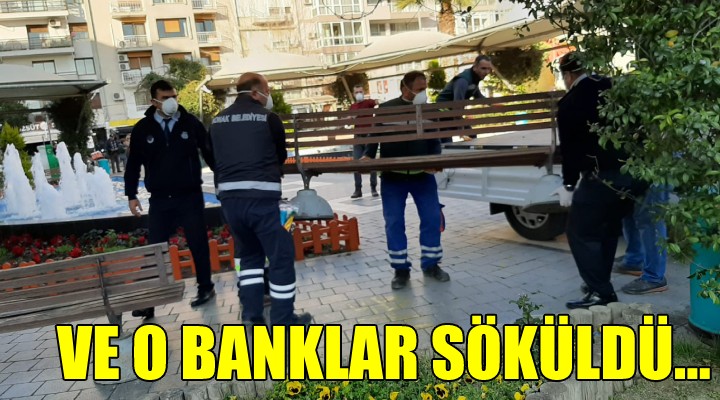 SONKALEİZMİR-Konak Belediyesi, koronavirüs salgınının iyice yayılmaması için yapılan 'Evde Kal' uyarılarına aldırmadan soluğu sokaklarda ve parklarda alan yurttaşlar nedeniyle bankları söktü. Güneşli ve güzel havada birçok vatandaş bugün Güzelyalı Parkı'na akın ederken, Belediye Başkanı Abdül Batur'un talimatı ile söküm işlemi başladı. Saat 18.00'de Güzelyalı Parkı'ndaki oturma bankları kaldırıldı. İzmir Büyükşehir Belediyesi ekiplerinin de kentin birçok noktasındaki bankları kaldırmaya başladığı belirtildi.