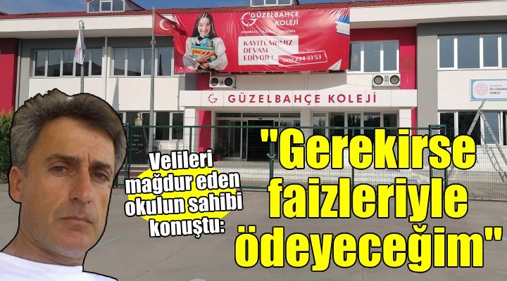 İçyer, şunları söyledi: "Bizim içimizdeki genel müdür olan şahıs İrfan Urhan bir karalama kampanyası yürüterek kendi öğretmenlerimizi ve öğrencilerimizi başka okula kaydırdı. 'Bu okul batıyor' gibi konuşmalarla bazı insanların kayıt sildirmesine sebep oldu. Amaçları okul binamızı elde etmekti. Biz vermedik. Adımızı da değiştirdik. Güzelbahçe Koleji adıyla aynı binamızda bize inanan veliler ve öğretmenlerle yolumuza devam ediyoruz. Şimdi diğer okulla aramızda demir tel var. Paramız da pulumuz da var. Ödemeleri yapıyoruz. Biraz geciktiği doğrudur. O şahsın karalama kampanyası nedeniyle 50'ye yakın veli kayıt sildirdi. Ocak ayında ön kayıt aldırmıştık. Düzenimiz de bozuldu. Yeni bir marka yeni bir düzen oturtmak kolay olmadı. Bize inanan velilere, kendi olanaklarımla ödemeleri yapıyorum. Diğerlerine de ödemeleri yapacağız. Gerekirse faizleri ile birlikte ödeyeceğim."