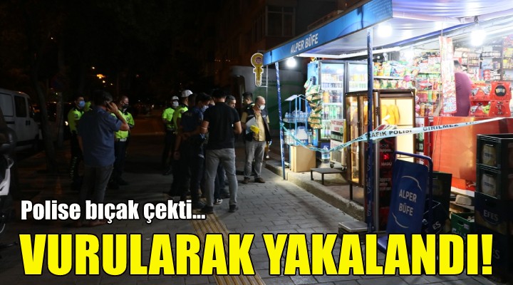 Sinirlenerek ehliyetini vermek istemeyen A.S., polislerle tartışmaya başladı. Tartışmanın ardından polis ekipleri, A.S.'yi etkisiz hale getirmek için müdahale etti. Müdahale sırasında, A.S.'nin polise bıçak çektiği ileri sürülürken, bir polis memuru tabanca ile ateş ederek A.S.'yi bacağından vurdu. Etkisiz hale getirilen A.S.'ye olay yerine gelen sağlık ekiplerince ilk yardım müdahalesi yapıldı. Ambulansa alınan A.S., tedavi edilmek üzere İzmir Katip Çelebi Üniversitesi Atatürk Eğitim ve Araştırma Hastanesi'ne kaldırıldı.