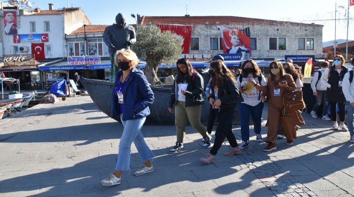 Yabancı konuklar, Foça’nın mimari ve tarihi dokusunu rehber arkeologlar eşliğinde gezip, Siren Kayalıklarına uzanan bir tekne turu da yaptı.