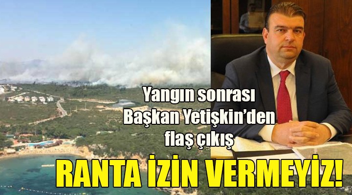 Seferihisar Belediye Başkanı İsmail Yetişkin, yangında kül olan Çamlık mevkiindeki alanın, rant beklentisi içinde olanlara kurban edilmeyeceğini dile getirdi. İki hafta önce kalp ameliyatı olan, dört damarı değişen Başkan Yetişkin, hasta yatağından yangınla ilgili şu mesajı yayımladı: