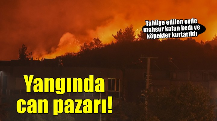 Alevlerin yaklaştığı Atatürk Mahallesi güvenlik amacıyla tahliye edildi. Bir evde yaşayan 3 kişinin tahliyesi sırasında evde yavru kedilerinin ve köpeklerinin mahsur kaldığını belirten kişi, hayvanların kurtarılması için jandarma ekiplerinden yardım istedi.