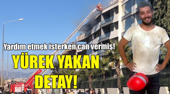 Çalışmalarına devam eden itfaiye ekipleri, dışarı çıkmadığı belirlenen Kaan Yalçın'ı bulmak için harekete geçti. İtfaiye ekipleri, Yalçın'ı asansörde hareketsiz yatarken buldu. Sağlık ekiplerince yapılan kontrolde Yalçın'ın dumandan zehirlenip, hayatını kaybettiği belirlendi. Yalçın'ın yangın çıkan apartmanda oturmadığı, bir arkadaşına ziyaret için geldiği belirtildi. Savcının incelemesinin ardından Yalçın'ın cenazesi, İzmir Adli Tıp Kurumu Morgu'na kaldırıldı. Yangın ile ilgili soruşturma sürerken, Kaan Yalçın'ın alevlerin geldiği dairedeki kişileri kurtarmak için yukarıya çıkmak istediği ancak dumandan etkilenerek yaşamını yitirdiği ortaya çıktı. Reklam ve tanıtım işleri yapan, bekar olduğu belirtilen Yalçın'ın, bugün toprağa verileceği bildirildi.