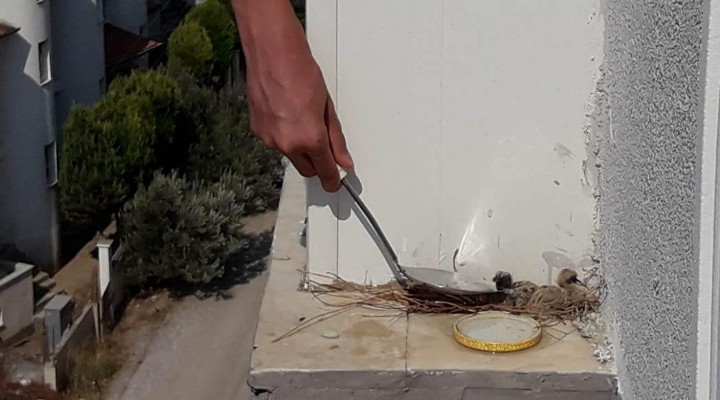 Torbalı Mahallesi Fulya 2 Sitesi'ndeki bir apartmanın 8'inci katındaki balkonun kenarına bir kumru yuva yapıp, 2 yumurta bıraktı. Evlerinin balkonundaki yumurtaların üzerinde yatan kumruyu geçen hafta fark eden lise öğrencisi Emre Topal, bir süre izledi. Anne kumrunun sıcak havada güç şartlarda bulduğu yiyecekler ile yavrularını beslemeye çalıştığını fark eden Topal, ilk iş olarak yuvanın yakınına kavanoz kapağı bıraktı. Ardından da kepçe yardımı ile kavanoz kapağına su koyarak, anne ve yavru kumruların su ihtiyacını çözdü. Ayrıca, yuvanın yakınına ekmek parçaları bırakıp, beslenmelerini sağladı.