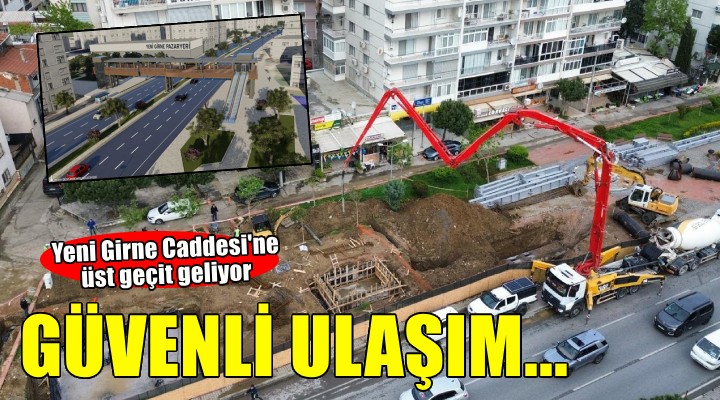 İzmir Büyükşehir Belediye Başkanı Dr. Cemil Tugay’ın kentin ulaşım konforunu artırmak için başlattığı projeler arasında yer alan Karşıyaka Yeni Girne Yaya Üst Geçidi çalışmaları hızla ilerliyor. 50 metre uzunluğunda, 6 metre genişliğinde ve 5 metre yüksekliğindeki üst geçitte 4 yürüyen merdiven ve 2 asansör bulunacak. 2025 yılının ikinci yarısında hizmete açılacak üst geçit Soğukkuyu Mahallesi ile Örnekköy Mahallesi arasında bağlantı kurarak pazaryeri, hastane ve eğitim kurumları başta olmak üzere yaya ulaşımının yoğun olduğu bölgeye nefes aldıracak. Girne Bulvarı üzerindeki trafik akışını da rahatlatacak üst geçidin ayak temellerinden biri Yeni Girne Pazaryeri yanında diğeri ise Öğretmenler Parkı yanında yer alıyor. Üst geçit gölgeliği, yayaların dinlenerek çevreyi seyredebileceği oturma alanları ile bölgeye renk katacak.