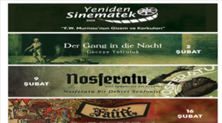Yeniden Sinematek, şubat ayında Goethe Institut iş birliği ile “F.W. Murnau’nun Gizem ve Korkuları” temasıyla sinemaseverlerle buluşmaya hazırlanıyor. Seçkide dışavurumculuk akımının Alman sinemasındaki en önemli temsilcilerinden olan F. W. Murnau’nun birbirinden etkileyici eserleri yer alıyor. Ücretsiz film gösterimleri, 2 Şubat Pazar günü “Geceye Yolculuk” ile başlayacak. 9 Şubat Pazar günü ise “Nosferatu, Bir Dehşet Senfonisi” gösterilecek. Seçkinin son filmi ise “Faust Bir Alman Halk Hikâyesi” olacak. Film, 16 Şubat Pazar günü izleyicilerle buluşacak. Tüm filmler İzmir Sanat Büyük Salon’da saat 19.00’da başlayacak.