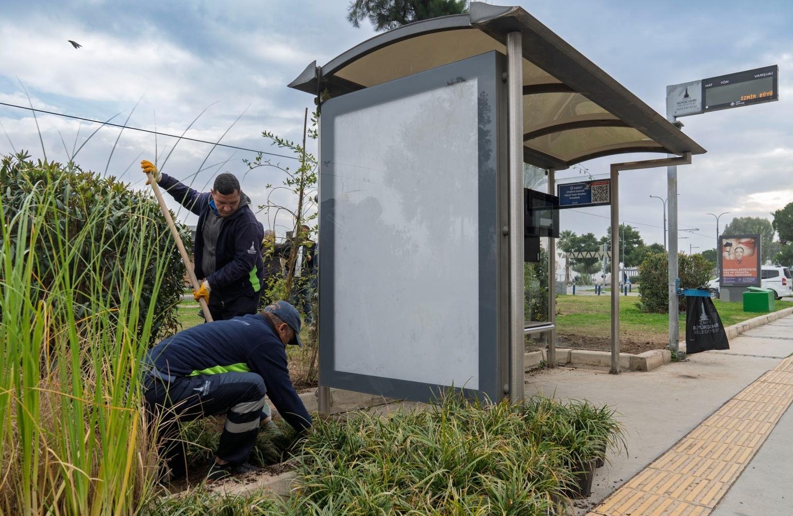 Çalışmalar hakkında bilgi veren Park ve Bahçeler Dairesi Başkanlığı Güney Alanlar Bakım Şube Müdürlüğü’nde görevli Peyzaj Mimarı Koray Aydın, “Bu projeye başkanımızın talimatıyla başladık. Amacımız, durak yüzeylerinin çevresini ve çatılarını yeşillendirerek iklimsel, estetik ve görsel açıdan nitelikli bir uygulamayı hayata geçirmek. Projeyle İzmir’in estetik görünümüne katkı sağlıyoruz. Başkanımızın bu konuda özel bir hassasiyeti bulunuyor. Kullandığımız bitkilerde, diğer alanlarda olduğu gibi kuraklığa dayanıklı türleri tercih ediyoruz. Pennisetum, lavanta, lavantin ve biberiye gibi bitkiler kullanıyoruz. Durak arkalarında ise sarıcı bitkilere yer veriyoruz” dedi.