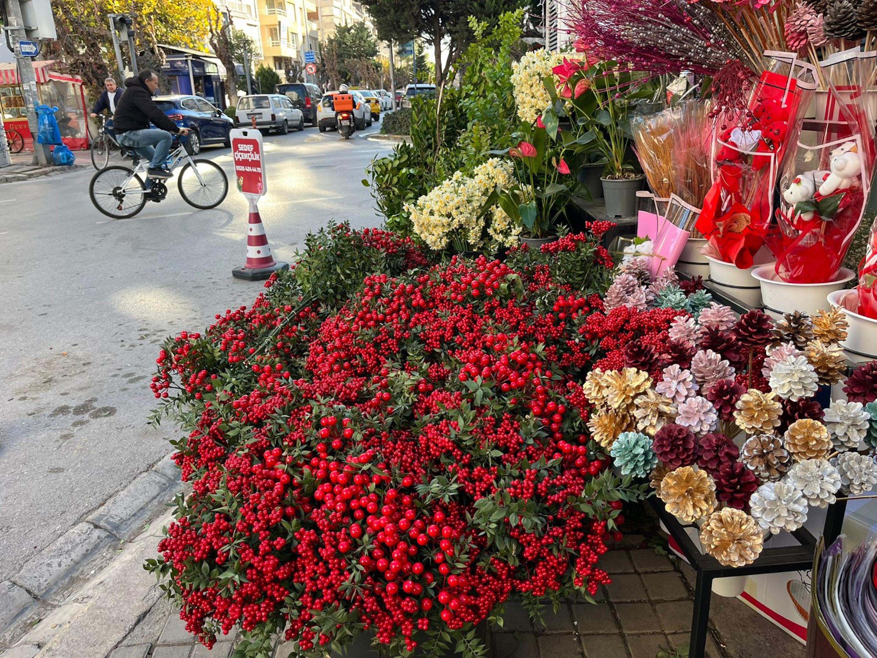 Yılbaşına kısa süre kala tezgahlardaki yerini alan kokina çiçeği, İzmir'de de yoğun talep görüyor. İzmir'de kafe ve sokak süslemelerinde de yer alan kokina, neredeyse tüm çiçekçi tezgahlarında bulunuyor. Şans ve bereket getirdiğine inanılan kokina çiçeği için hazırlıklarını tamamlayan esnaf, vatandaşların geçen yıla oranla daha çok tercih ettiğini belirtti. 1 yıl boyunca kurutmadan saklanıldığında dileğinin kabul olacağına inanılan kokina çiçeği, iki çiçeğin birleşmesiyle ortaya çıkıyor. Yeşil kokina yaprakları arasına 'silcan' adlı kızıl bir meyvenin iple bağlanarak oluşturulan kokinalar, mutluluk, huzur ve şans ile özdeşleşmiş bir bitki olarak biliniyor.