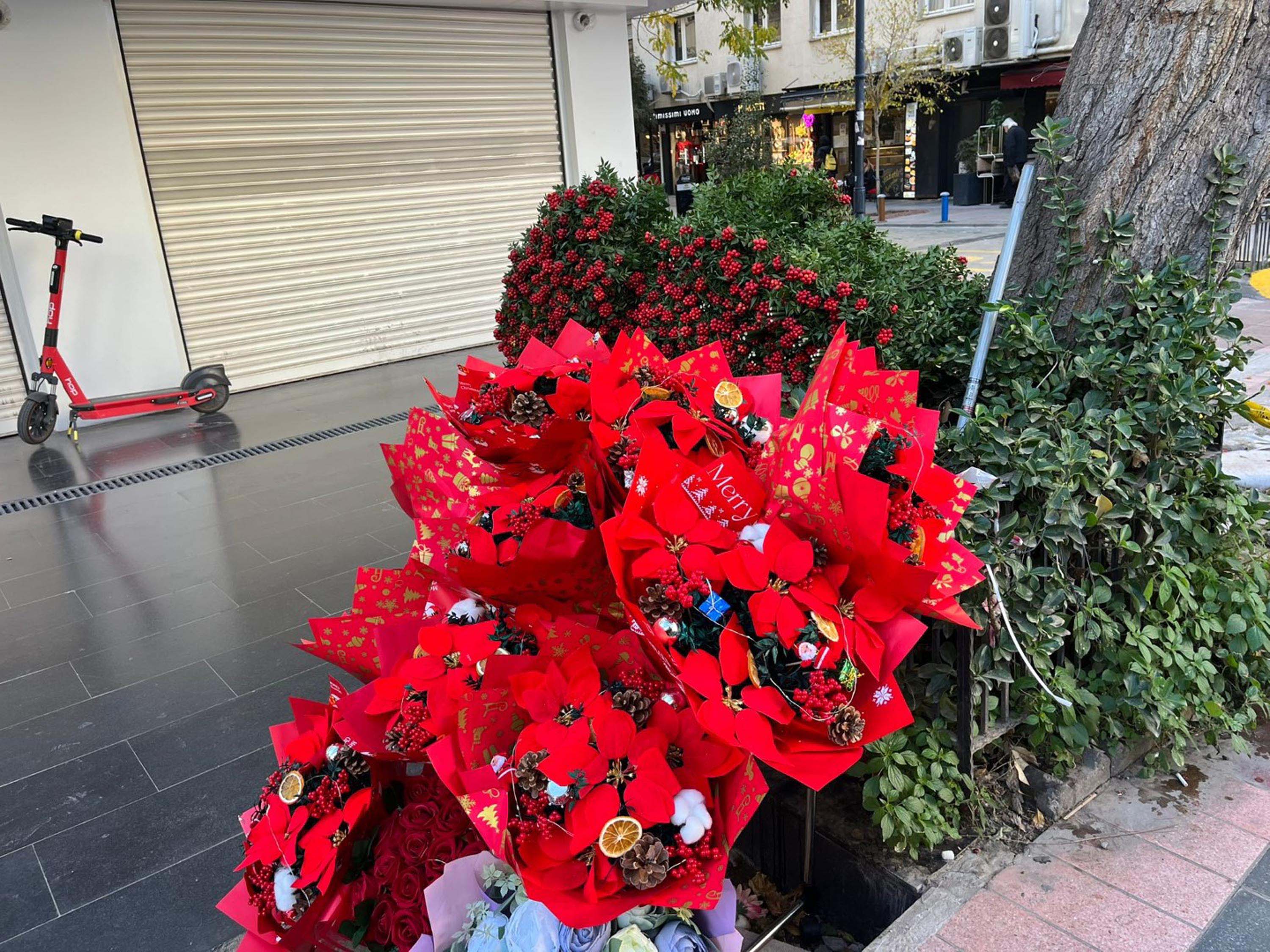 Kış, "Bugün kokina demeti, 200 TL'den başlıyor. Tabii tasarım, süsleme, büyüklüğüne göre de değişkenlik gösteriyor. Vatandaşlar alırken de daha uzun ömürlü olması için yeşillerinin kurumamış olmasına, taze olmasına ve çiçeklerinin kırmızı renginin canlı olmasına dikkat etsinler. Kokinalar aslında hazırda bulunan bitkiler değil, 'silcan' dediğimiz çiçekler toplanarak bu kokina bitkisinin üzerine dikilerek elde ediliyor. Yapımı çok zor. Çünkü dikenli bir bitki. Tabii yılın sonuna kadar devam ediyor satışlar. Daha sonra da bu tamamen ortadan kalkıyor. Sezonluk bir çiçek. Şu an da şehrin her bir yerinde hem dükkanların süslenmesinde hem insanların ellerinde bol bol görüyoruz" diye konuştu.