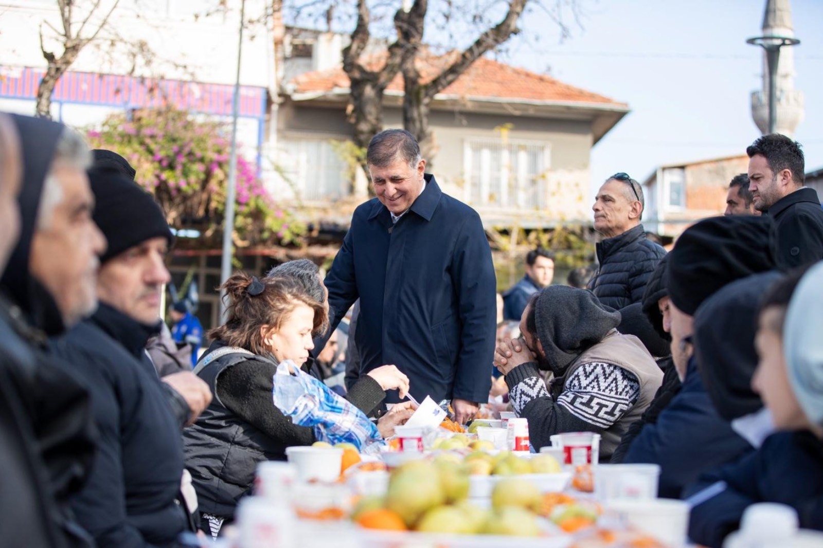 İzmir'in en eski yerleşim yerlerinden biri olan Basmane, yılın son gününde dayanışma sofrasına sahne oldu. İzmir Büyükşehir Belediyesi tarafından Hatuniye Meydanı'nda düzenlenen programda, Basmane semtinde yaşayan yurttaşlar için sofra kuruldu. İzmir Büyükşehir Belediye Başkanı Dr. Cemil Tugay da bölgeye gelerek vatandaşlarla sohbet etti ve onların yeni yılını kutladı. Paylaşmanın ve komşuluğun güçlendiği buluşmada, Tepecikli Müzisyenler Derneği tarafından canlı müzik dinletisi gerçekleştirildi. Hep birlikte aynı sofrada buluşmanın keyfini yaşayan yurttaşlar, Başkan Tugay’la hatıra fotoğrafı çektirdi. Program kapsamında Sosyal Hizmetler Dairesi Başkanlığı Sosyal Yardımlar Şube Müdürlüğü ekiplerince sosyal inceleme çalışması da yapıldı.