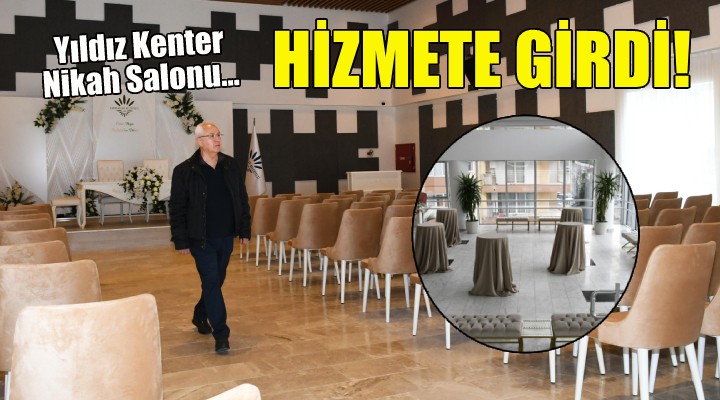 150 metrekarelik nikah salonu, 150 metrekarelik fuaye ve takı alanı, modern süslemesiyle dikkat çeken Yıldız Kenter Nikah salonunda ilk nikahlar kıyıldı.