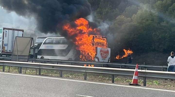 Sürücünün çabaları yetersiz kalırken, alevler de bir anda otobüsü sardı. İstanbul yönü ulaşıma kapanırken, bölgeye gelen itfaiye ekipleri de yangına müdahale etti. Alevler söndürürken, yolcu bulunmayan otobüs ise kullanılamaz hale geldi.