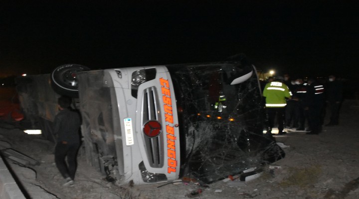 Kaza, saat 01.30 sıralarında Konya- Adana karayolunun 20'nci kilometresinde meydana geldi. Bingöl'den İzmir'e yolcu taşıyan Mehmet Aydın yönetimindeki 12 AH 333 plakalı otobüs, sürücüsünün direksiyon kontrolünü yitirmesi sonucu refüje devrildi.