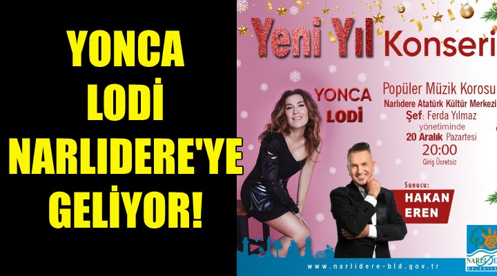 Birbirinden özel eserlerin seslendirileceği konser, İzmirliler’e müzik ziyafeti yaşatacak. Narlıdere Belediyesi, 2022’yi erken karşılıyor. Kültür sanat etkinlikleri kapsamında Türk Pop Müziği’nin güçlü yorumcularından Yonca Lodi ile Narlıdere Belediyesi Popüler Müzik Korosu birlikte sahne alacak.