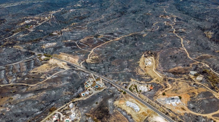 Kavurucu sıcakların etkisi altındaki Yunanistan, başta Rodos Adası olmak üzere günlerdir kontrol altına alınamayan orman yangınlarıyla mücadele ediyor. Uluslararası haber ajanslarının paylaştığı ve havadan çekilen fotoğraflarda Rodos’taki yıkımın boyutu gözler önüne serildi. Geçen hafta başlayan yangınların büyük bir yıkım yarattığı Rodos’ta geçen hafta 20 binden fazla tatilci ve bölge sakini evlerini ve otelleri terk etmek zorunda kalmıştı.