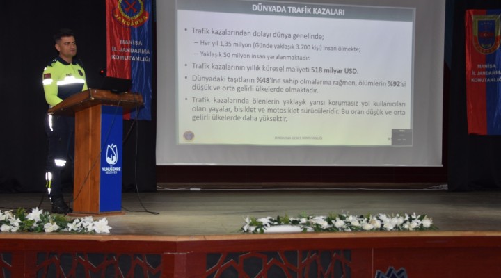 Yunusemre Belediyesi Zabıta Müdürlüğü bünyesinde görev yapan personeller, Manisa İl Jandarma Komutanlığının gerçekleştirdiği genel trafik kuralları ile ilgili eğitimine katıldı. Yunusemre Millet Çarşısı Konferans Salonu’nda gerçekleştirilen, eğitime Yunusemre Belediyesi’nde görev yapan 90 zabıta personeli katıldı. Manisa İl Jandarma Komutanlığında görevli Jandarma Astsubay Kıdemli Çavuş Mert Dölek tarafından verilen eğitimde, trafikte güvenli taşıt kullanımı, sürücülerin can ve mal güvenliği için uyması gereken kurallar personellere anlatıldı. - 2025-02-25T113045.067.jpg)