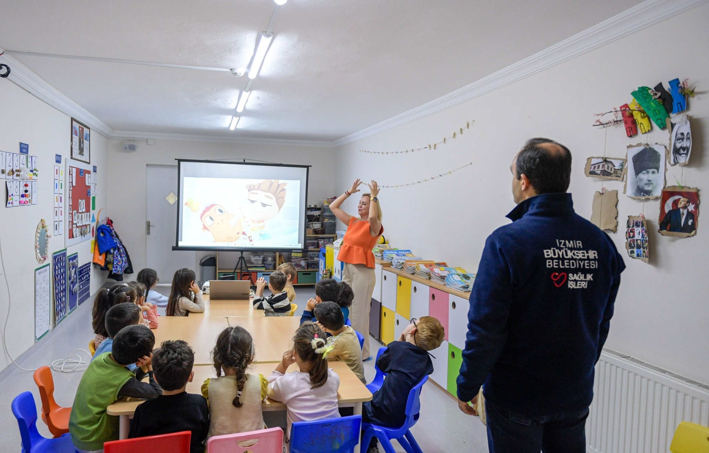 İzmir Büyükşehir Belediyesi, İZELMAN Yuvamız İzmir Çocuk Etkinlik Merkezleri’nde eğitim alan çocukların temel sağlık ve güvenlik konularında farkındalık kazanmasını sağlamak, sağlıklı yaşam alışkanlıklarını desteklemek ve olası kazalara karşı koruyucu davranışlar geliştirmelerine yardımcı olmak amacıyla eğitim programı başlattı. İzmir Büyükşehir Belediyesi Sağlık İşleri Dairesi Başkanlığı Sağlık Eğitimleri Şube Müdürlüğü ve İZELMAN Ortak Sağlık Güvenlik Birimi iş birliği ile yürütülen programdan Yuvamız İzmir Çocuk Etkinlik Merkezleri bünyesindeki 4-5 yaş grubu öğrenciler yararlanıyor. Mayıs ayına kadar sürecek program “hijyen” ve “çocukların yaşadığı ev kazalarından korunma ve ilkyardım” konulu teorik ve uygulamalı eğitimlerle başladı. Hijyen eğitiminde çocuklar, mikropların ne şartlarda bulaşacağını çamur deneyi ile öğrendi. Daha sonra uzman eğitmen tarafından nasıl el yıkanması gerektiği uygulamalı olarak gösterildi. Ev kazalarından korunma ve ilkyardım eğitiminde ise çocuklara önemli bilgiler aktarıldı.