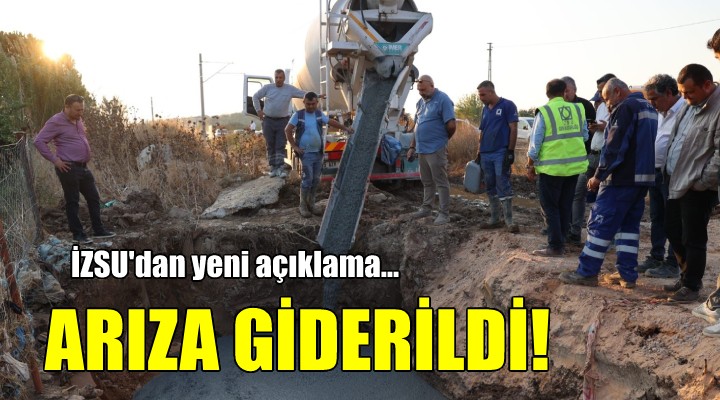 Kuzey kaynaklarından İzmir’e su sağlayan, Karşıyaka, Çiğli, Bayraklı, Bornova ve kısmen Konak ilçelerini besleyen 2200 mm çaplı hatta GDZ Elektrik Dağıtım A.Ş’nin kablo döşemek için yatay delgi yaparken neden olduğu arıza giderildi. İZSU ekipleri 24 saati aşkın bir süre alanda ara vermeden çalışarak hasar gören boruyu tamir etti. İçme suyu hattı planlanandan çok daha erken zamanda hizmete açıldı ve şebekeye su verilmeye başlandı.