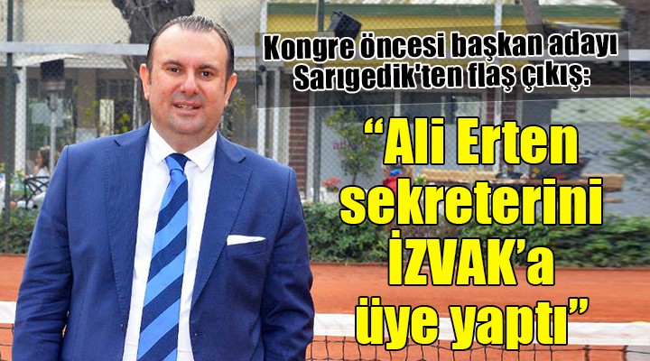 Kendi çevresinden İzmir futboluna katkı sağlamak için çalışmaya hazır birçok ismin İZVAK'a üyelik başvurusunun reddedildiğini söyleyen Sarıgedik, "İZVAK tüzüğüne göre İzmir futboluna katkı sağlayacak isimler üyelik için seçilir. Ben sayın Erten'e soruyorum. Ali beyin ofisinde çalışan sekreteri Yasemin Ersan, kardeşi Metin Erten ve ofisinde çalışan Mesut Tekaslan, Feriye Özbay ile Emre Akın acaba İZVAK'a nasıl bir katkı sağlamıştır. Mutlaka katkı sağlamışlardır ama ben merak ediyorum bu katkıyı. Bilgi almak istiyorum. Bizim çevremizdeki birçok arkadaşımızın üyelik başvurusu reddedilmişti" diye konuştu.