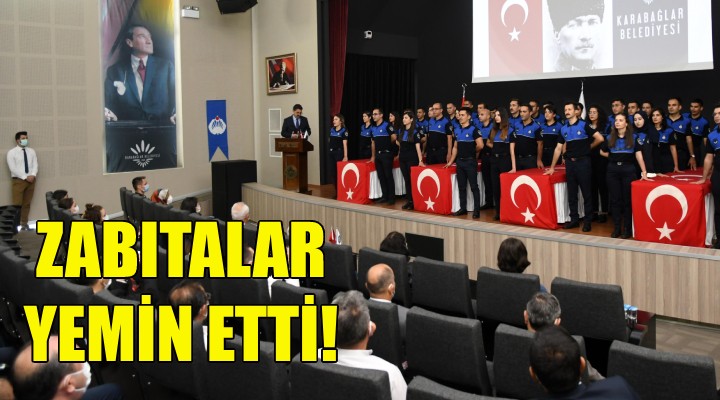 Konuşmaların ardından zabıta memurları, ellerini Türk bayraklarına koyarak ve Karabağlar Belediye Başkan Yardımcısı Aykut Kolatar tarafından okunan metni hep bir ağızdan tekrarlayarak yemin ettiler.
