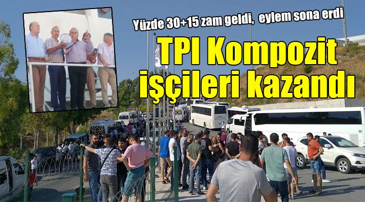 SONKALEİZMİR-Menemen'deki serbest bölge ve Sasalı’daki fabrikada faaliyet gösteren TPI Kompozit'in işçileri 17 günlük iş bırakma eylemine dün akşam son verdi. Asgari ücretin üzerine yüzde 5 iyileştirme yapılması teklifini kabul etmeyen ve 6 Temmuz'da eylem başlatan yaklaşık 4 bin işçiye yüzde 30+15'lik zam yapılacağı açıklandı.