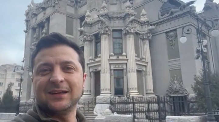Ukrayna Devlet Başkanı Volodimir Zelenski, bu sabah Kiev’deki ofisinin önünde kaydettiği bir videoyu Twitter'da paylaştı.