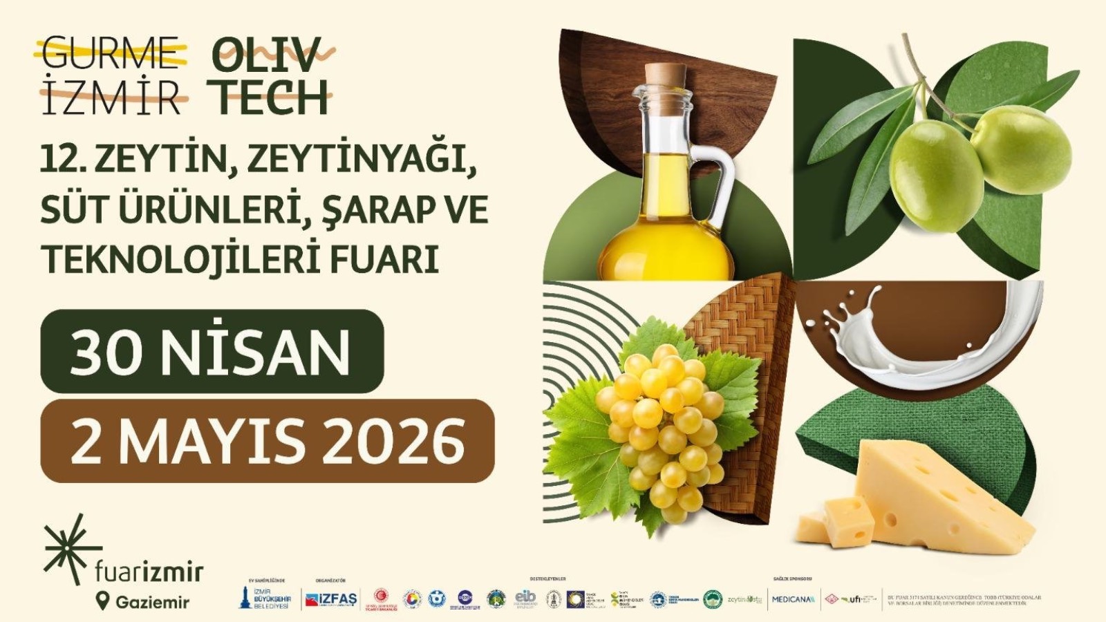 İzmir Büyükşehir Belediyesi ev sahipliğinde, İZFAŞ tarafından düzenlenen Olivtech - 12. Zeytin, Zeytinyağı, Süt Ürünleri, Şarap ve Teknolojileri Fuarı, 30 Nisan - 2 Mayıs 2026 tarihleri arasında Fuar İzmir C Hol’de gerçekleştirilecek. Olivtech, ortaya çıkaracağı ticari hacmin yanı sıra sektörün tüm bileşenlerini bir araya getiren kapsamlı etkinlik programıyla da öne çıkacak.
