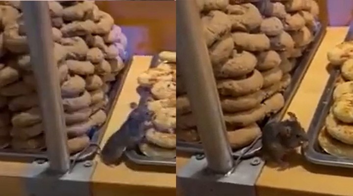 Görüntüleri çeken müşteri, "Minik fare kurabiyeleri yedi" diyerek tepki gösterdi.