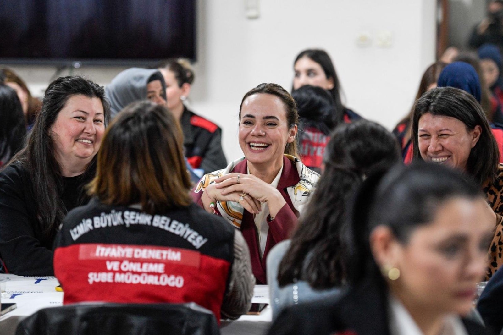 İzmir Büyükşehir Belediye Başkanı Dr. Cemil Tugay’ın eşi Öznur Tugay, ESHOT'ta görev yapan kadın şoför ve kadın hareket amirler ve İzmir İtfaiyesi'ndeki kadın personelle bir araya geldi. Türkiye'de en fazla kadın şoföre sahip olan Eshot Genel Müdürlüğü'nün Buca Gediz Atölyesi’nde iftar sofrasına konuk olan Öznur Tugay'a, İzmir Büyükşehir Belediyesi Genel Sekreter Yardımcısı ve ESHOT Genel Müdürü Övünç Özgen, İzmir Büyükşehir Belediyesi Genel Sekreter Yardımcısı Prof. Dr. Pınar Okyay, Eşrefpaşa Hastanesi Başhekimi Doç. Dr. Başak Bayram, İzmir Büyükşehir Belediyesi Sosyal Hizmetler Dairesi Başkanı Ela Hızlı, ESHOT’un kadın bürokratları da eşlik etti. Öznur Tugay, masaları dolaşarak kadın şoförlerle sohbet etti.